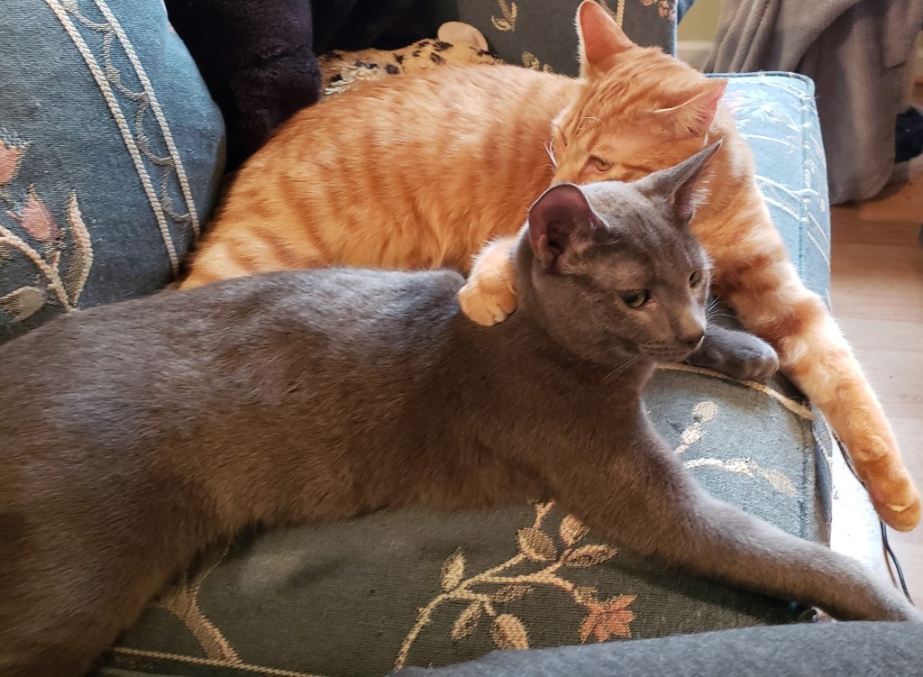 Pats and cuddles to the cats.