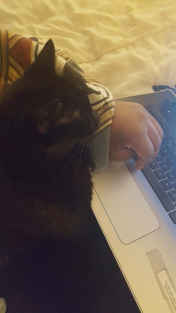 Onward, with Aomy at my side, laying claim to my arm. Oldie but a goodie. It was very hard to type like that!