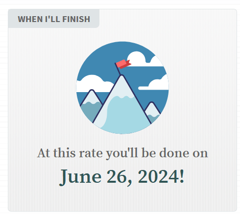 When I started Nano many years ago it was to reach 50,000 regardless if there was a “story”. This year I focused on the story and did not get a lot of words on paper. Seeing your Nano post is what helped me not get emotional when not meeting the Nano end word count. My “at this rate date” is March 7, 2024. Thanks for sharing the real of writing. It gives hope.